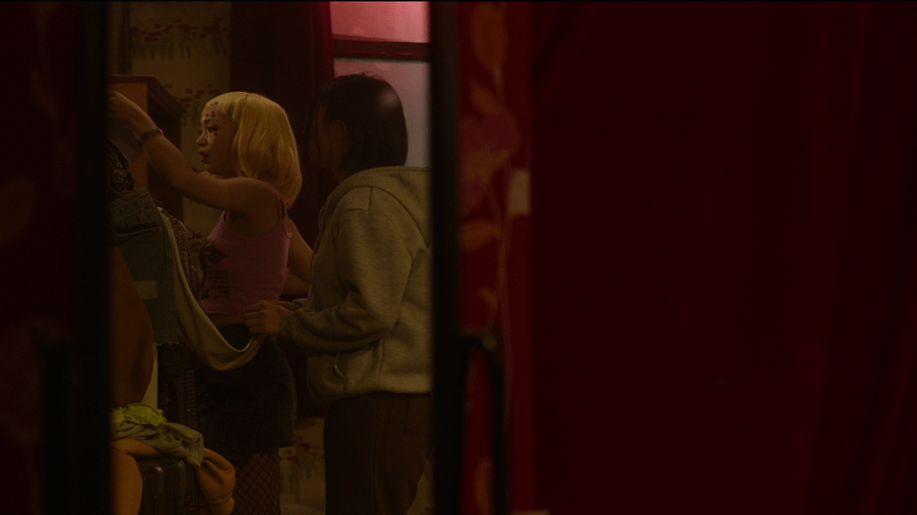 影片风格冷静、极简,仅保留黑白灰与红色,象征着孤独幻想中唯一真实的伤痕。
